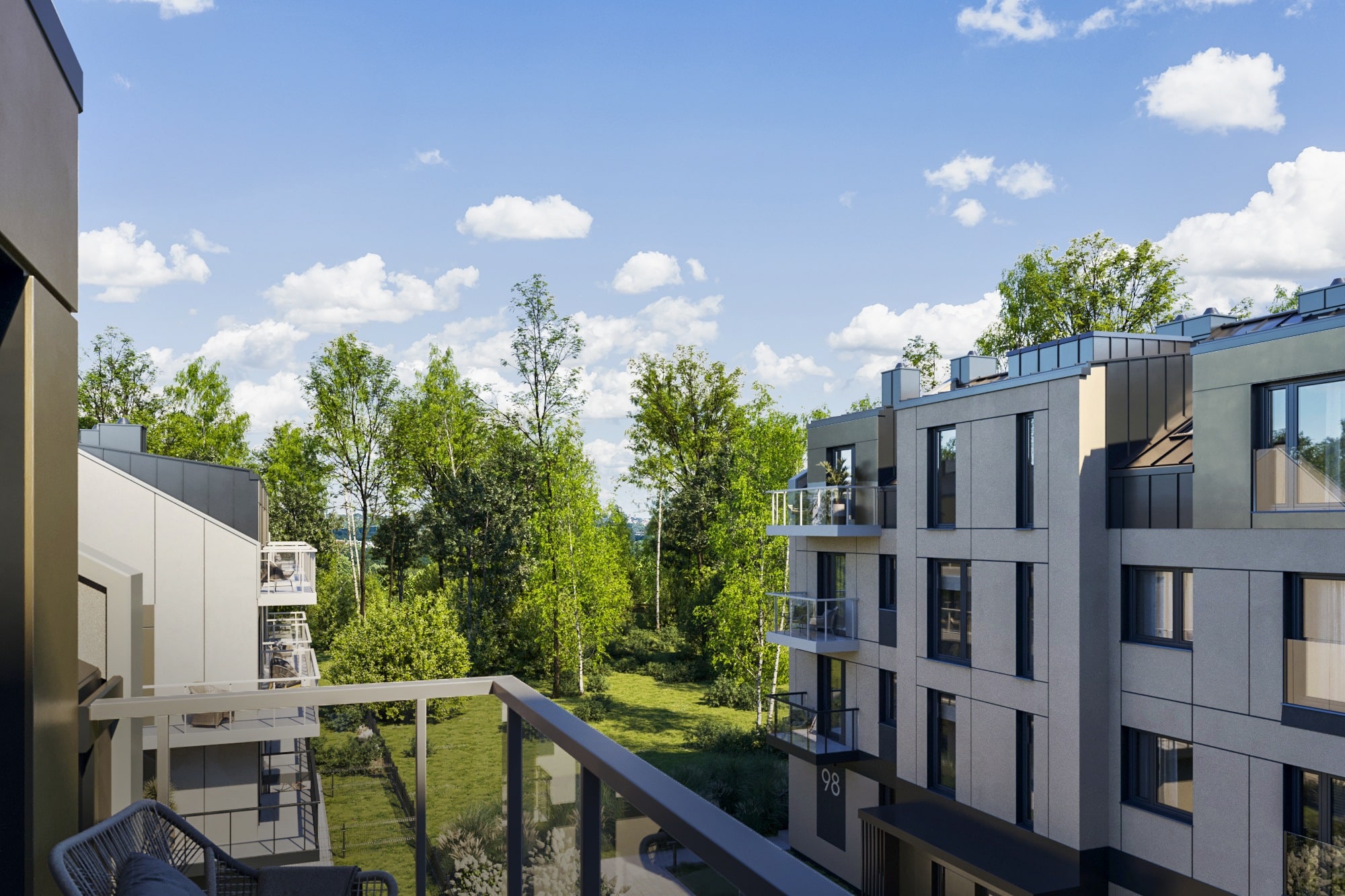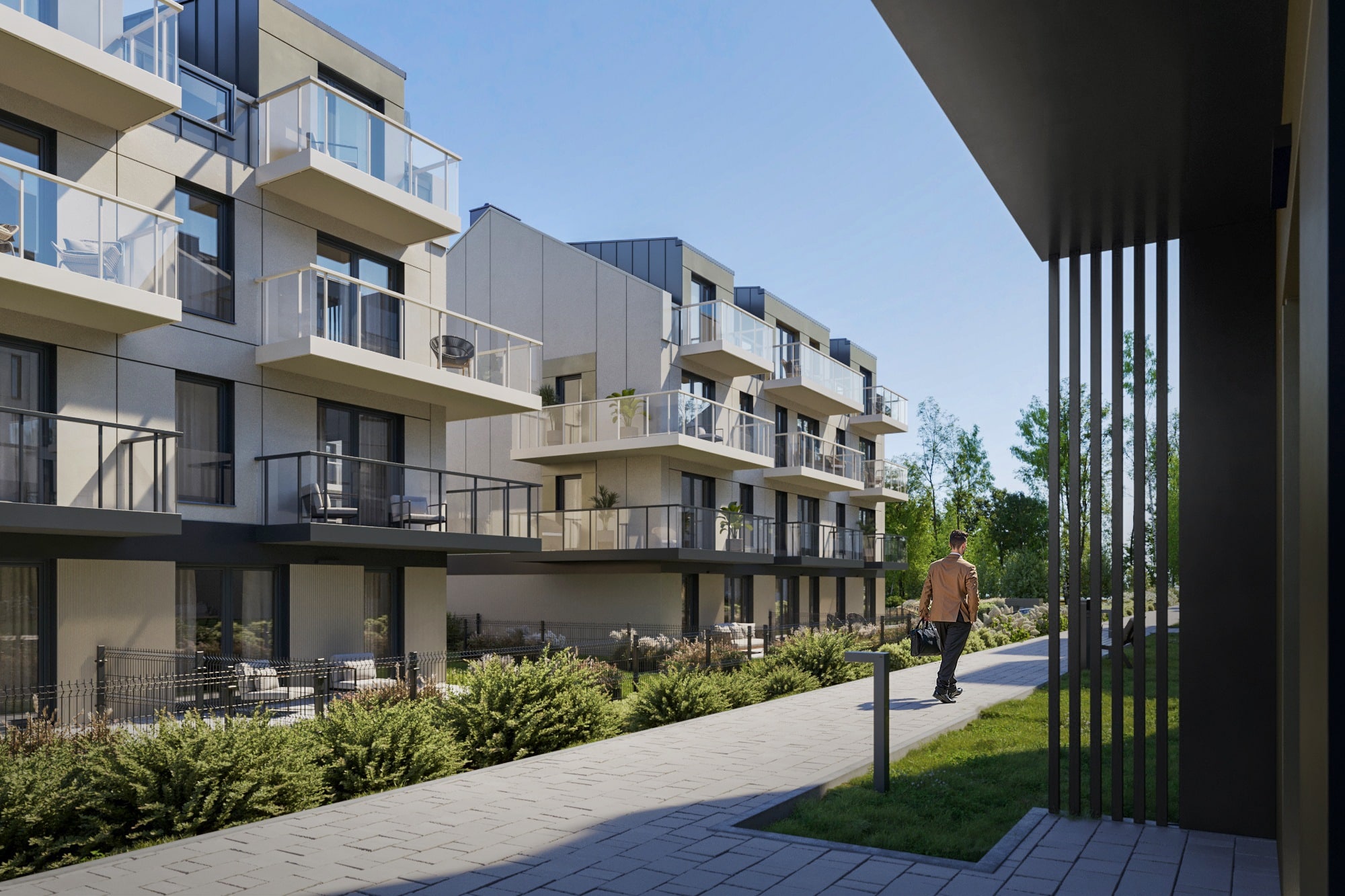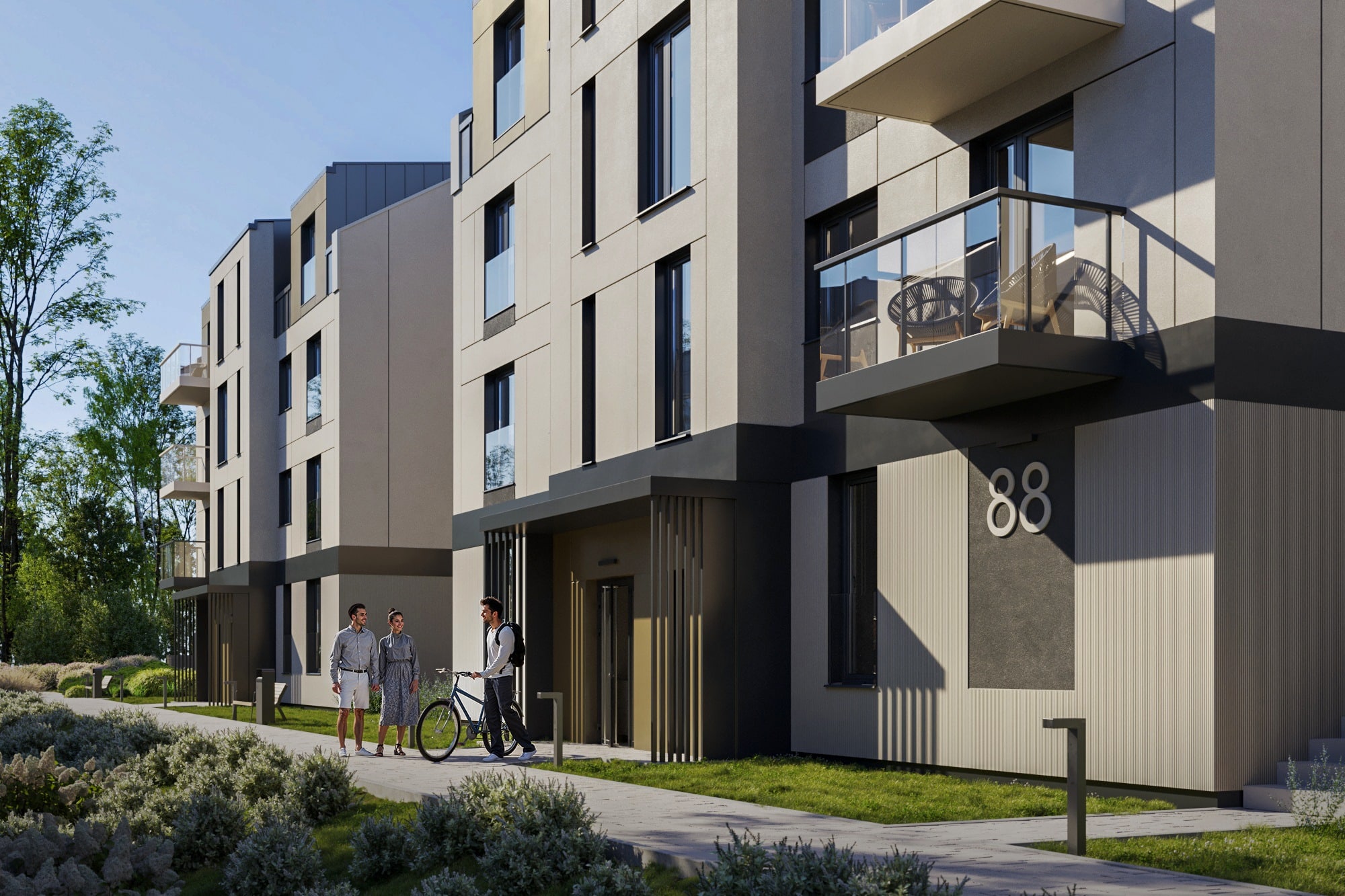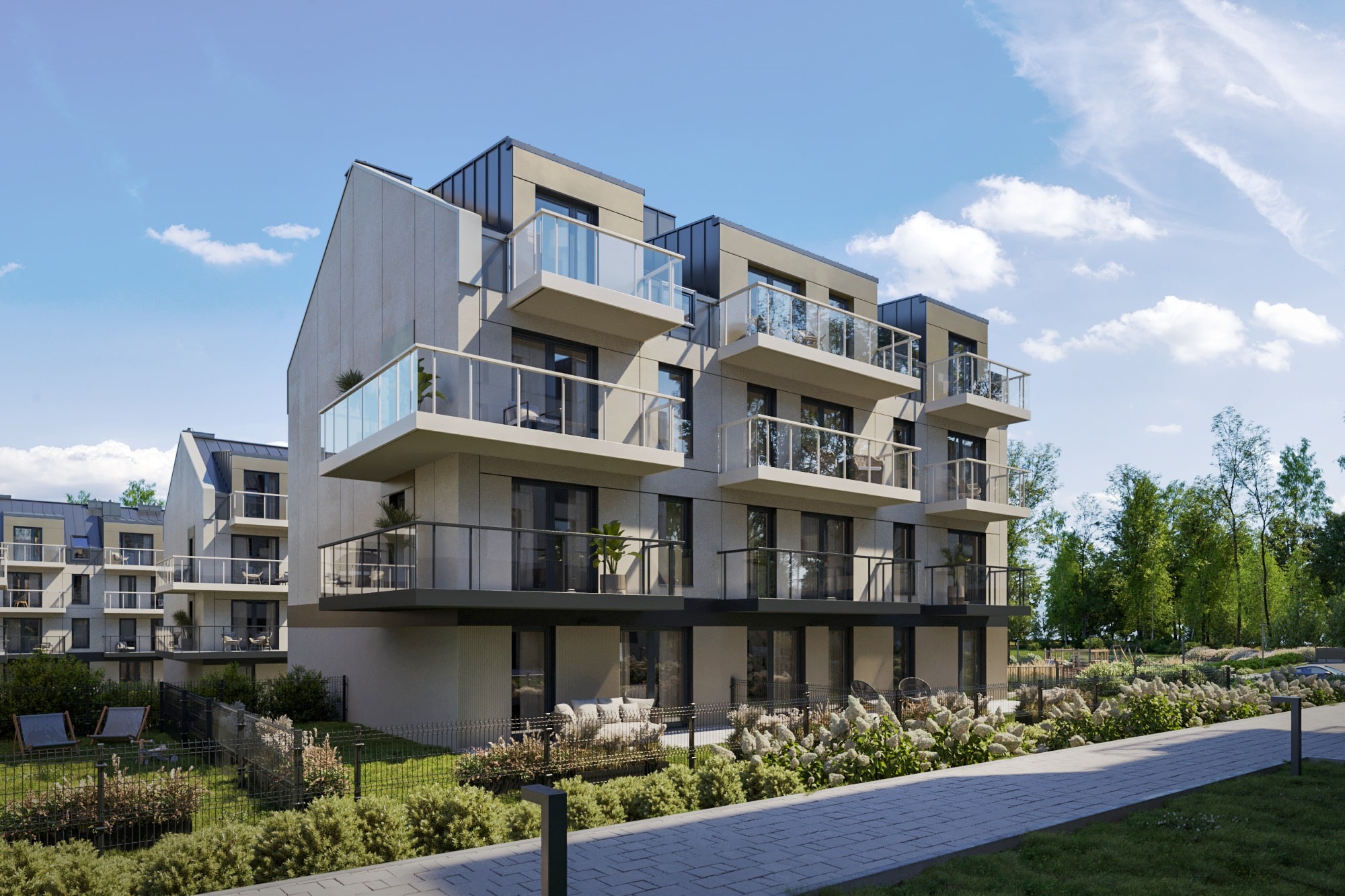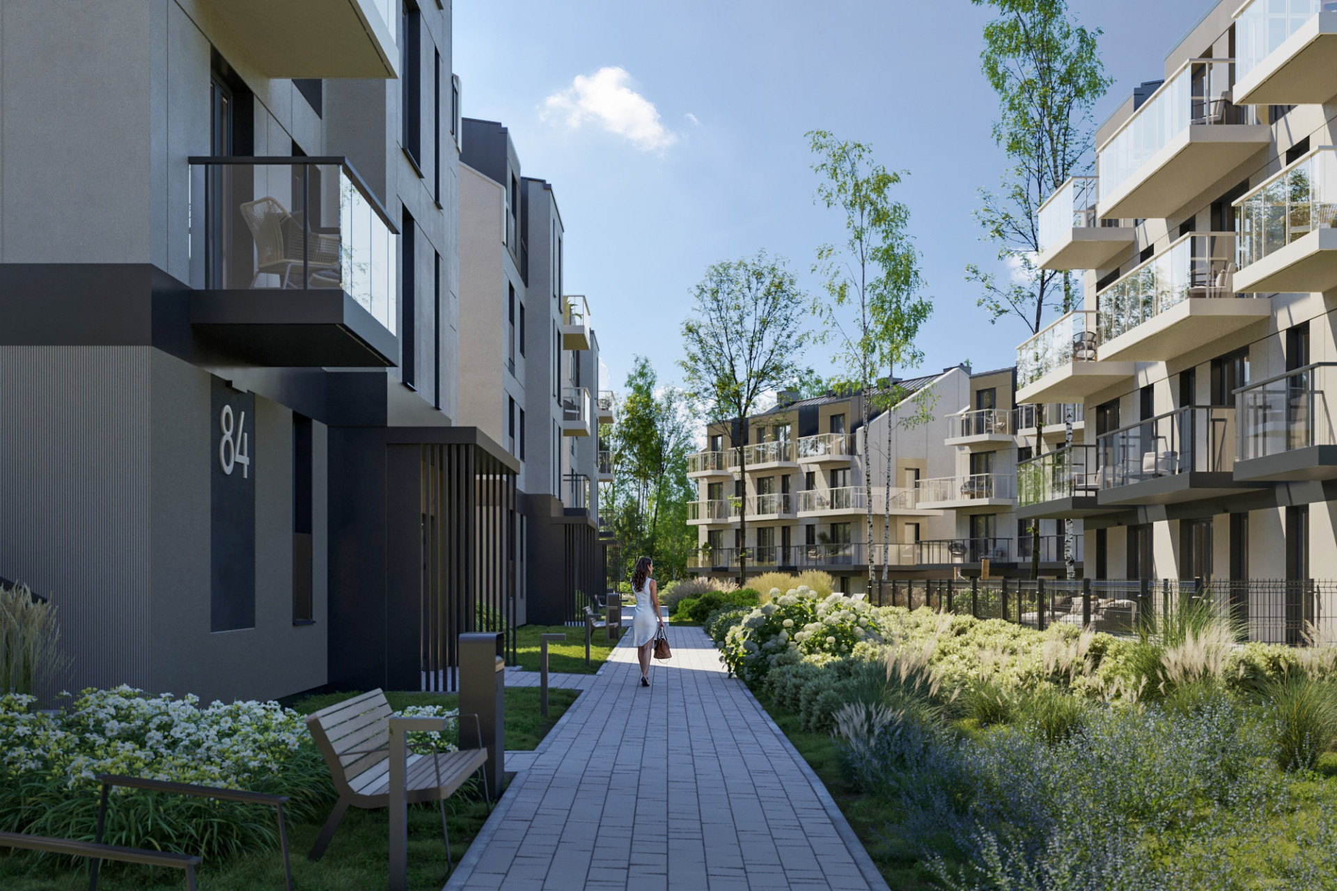 Każde mieszkanie będzie posiadało balkon, taras lub ogródek, zapewniając prywatną przestrzeń na świeżym powietrzu. Teren osiedla zostanie oświetlony, uporządkowany i objęty monitoringiem, co zwiększy poczucie bezpieczeństwa.
