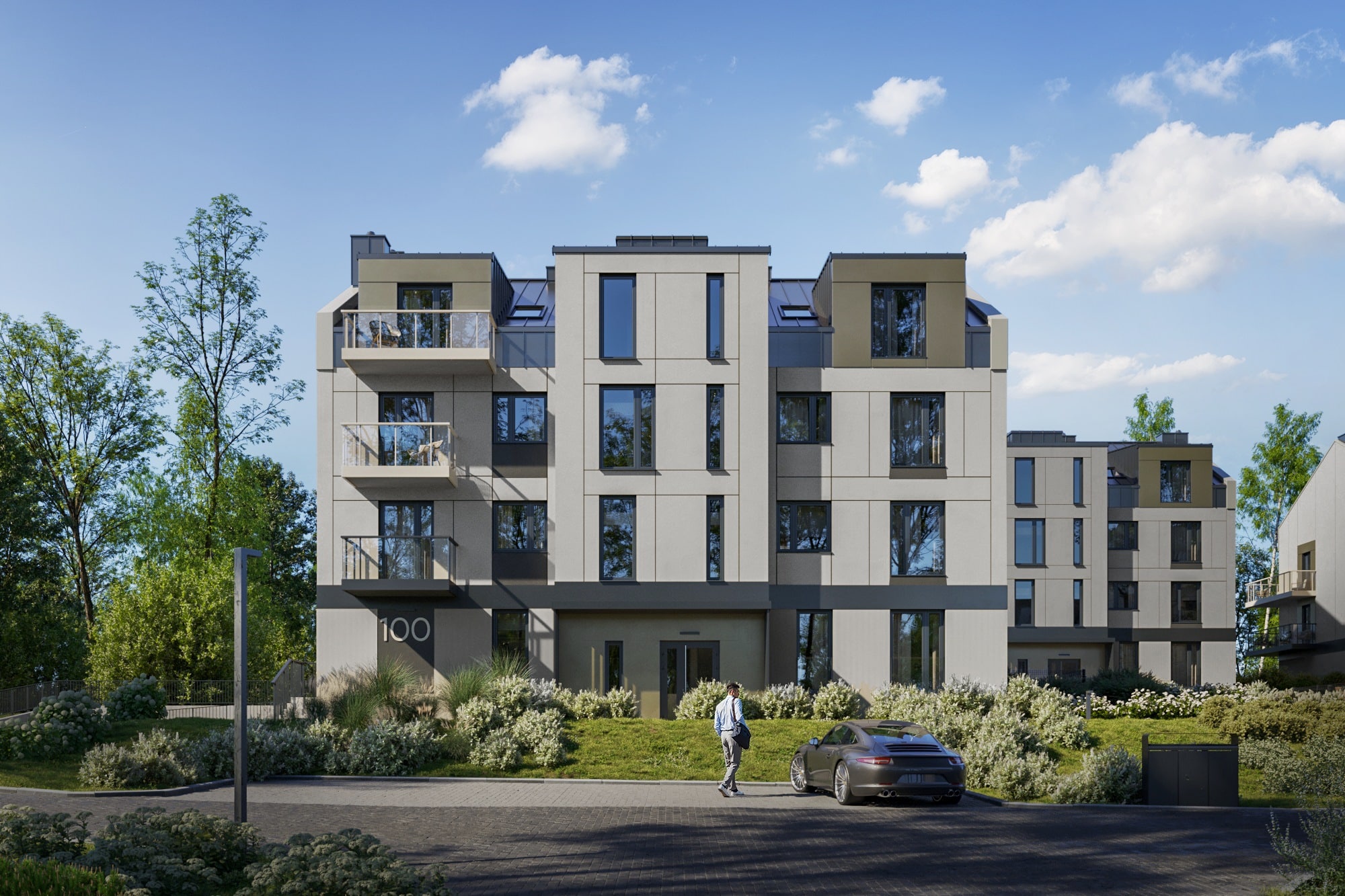 Architektura ATAL Bronowice połączy prostotę z elegancją. Jasne elewacje, duże przeszklenia i starannie dobrane detale nadadzą budynkom nowoczesny, ale stonowany charakter. Zastosowane materiały wykończeniowe zagwarantują trwałość i estetykę na lata.
