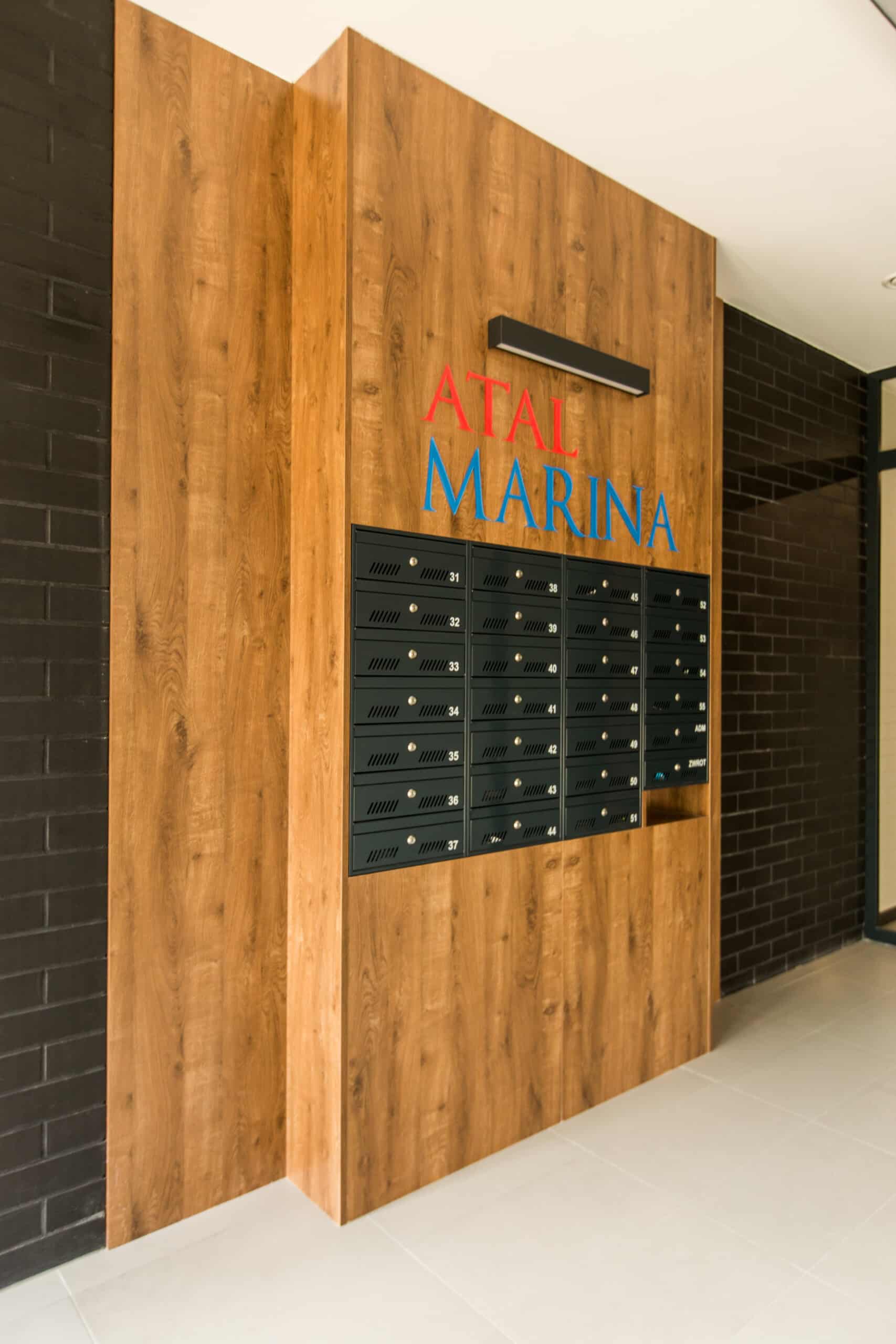 ATAL Marina Apartamenty II charakteryzuje się niepowtarzalnym stylem. Szare ściany elewacji uzupełnione zostały o drewniane elementy oraz balustrady w ciemnoszarej tonacji. Przestrzeń na terenie osiedla została zaaranżowana na zielone dziedzińce, gdzie powstał plac zabaw.