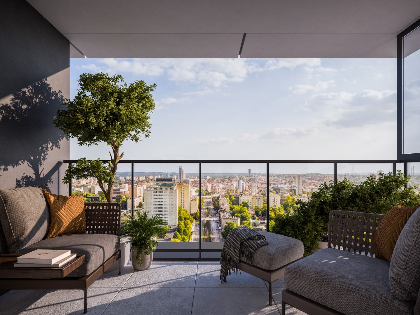 Mieszkania we wszystkich budynkach do 15 kondygnacji będą posiadały loggie, a te powyżej 15 kondygnacji powiększone zostaną o dodatkową przestrzeń użytkową. Na parterze budynków C i F zaaranżowane będą ogródki lokatorskie. Inwestorzy mogą zdecydować się na nowoczesne mikroapartamenty, jak i przestronne mieszkania.